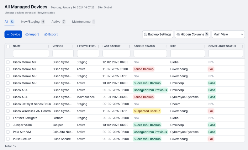 Enhance your network's cyber resilience with automated vulnerability remediation, one-click backups, and over 3,000 pre-built tasks for streamlined configuration compliance at scale.