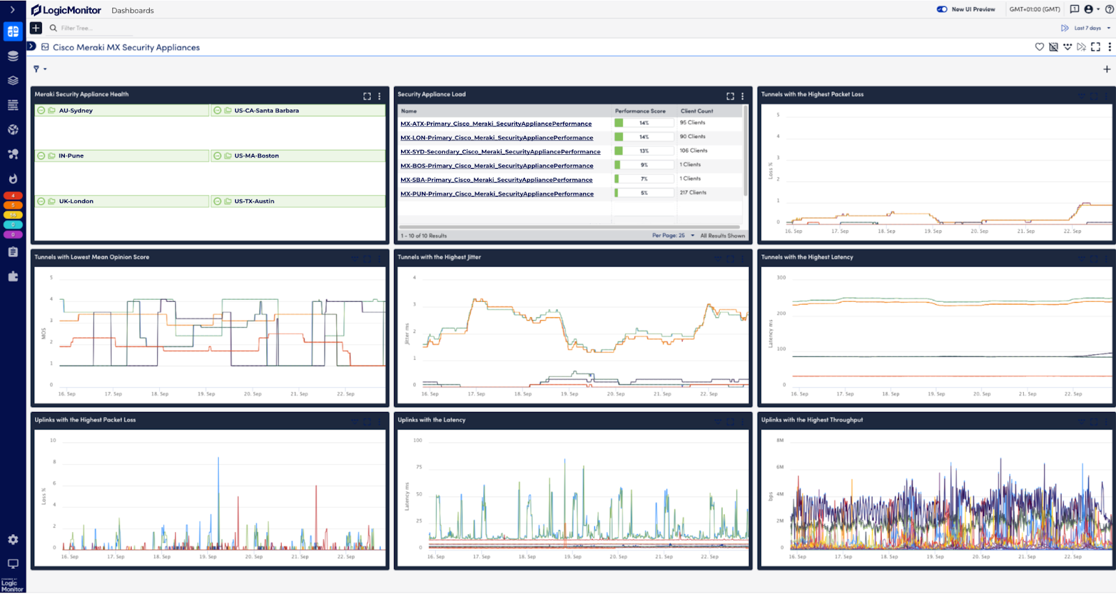 LogicMonitor enables organizations to visualize, trend, and forecast the availability, health, performance, and capacity of Cisco Meraki devices in the broader context of a heterogeneous hybrid and multi-cloud infrastructure.​