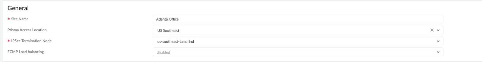 Configure General information - Select Compute point closest to your location. Below we have selected US Southeast for our Atlanta Branch Office