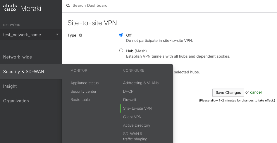 Enable Meraki site-to-site VPN