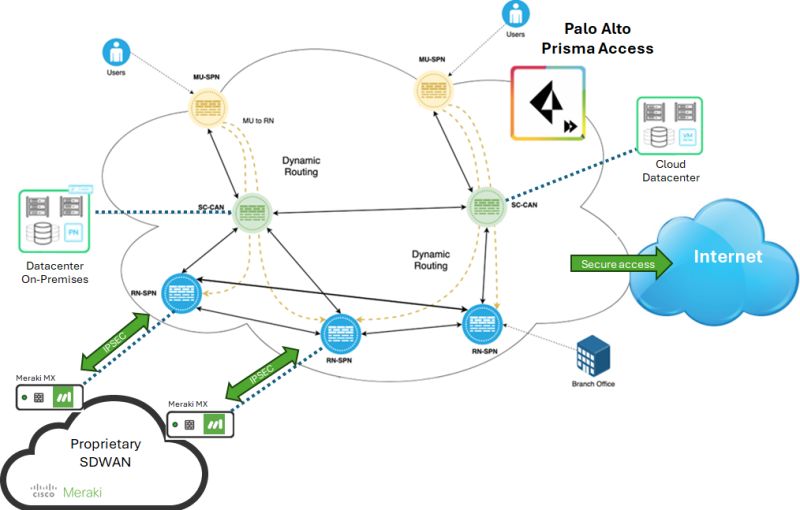 Enable seamless integration of Prisma Access security services with Meraki networks